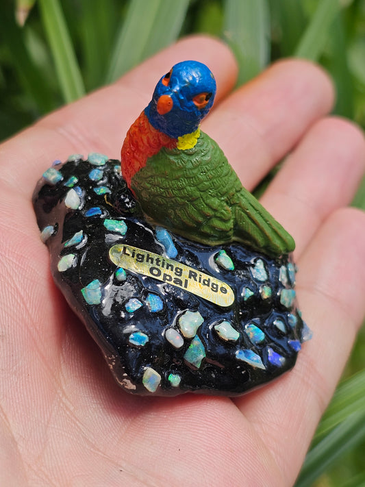Lightning Ridge Opal Chip Bird(Lorikeet) Statue
