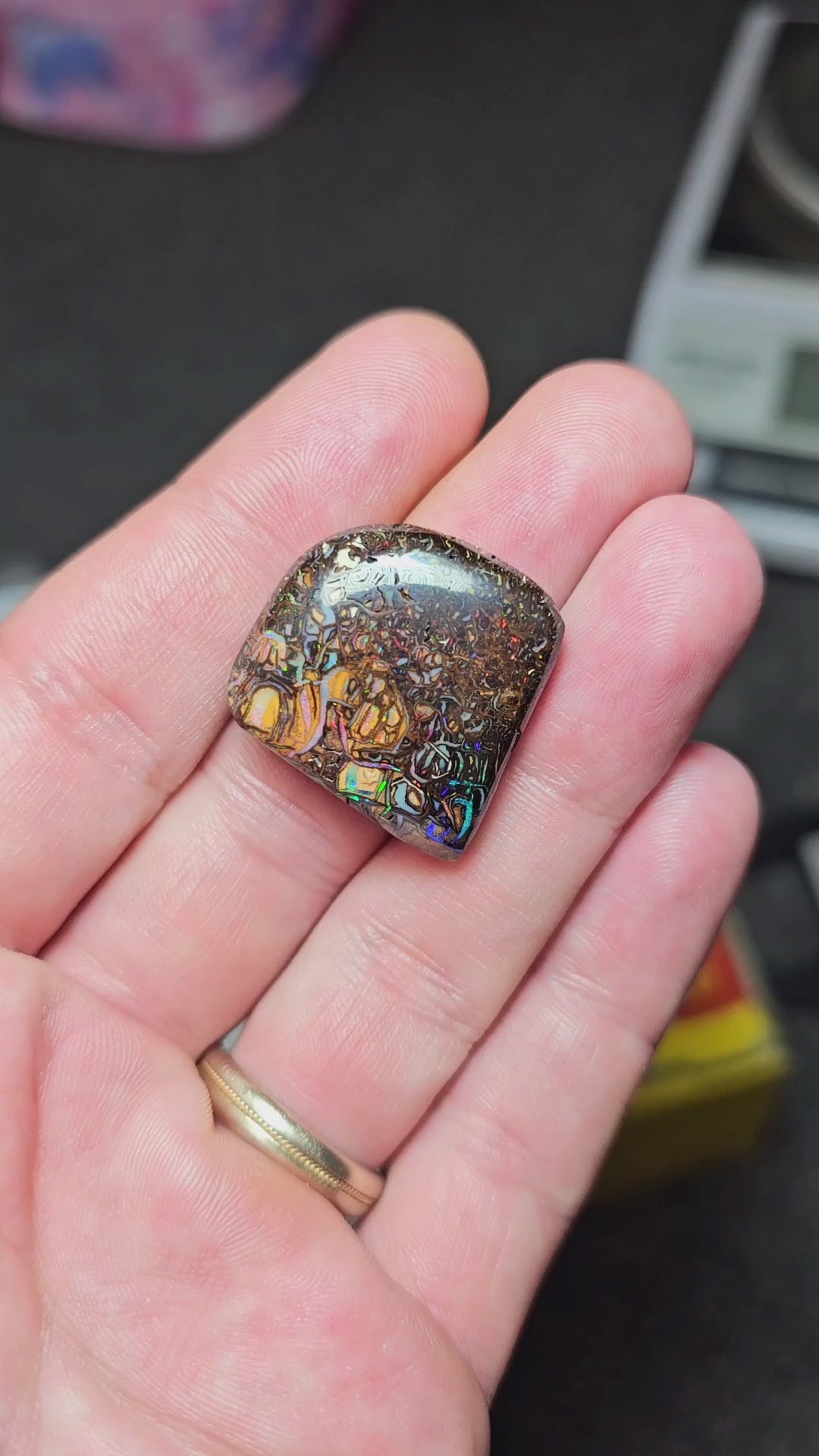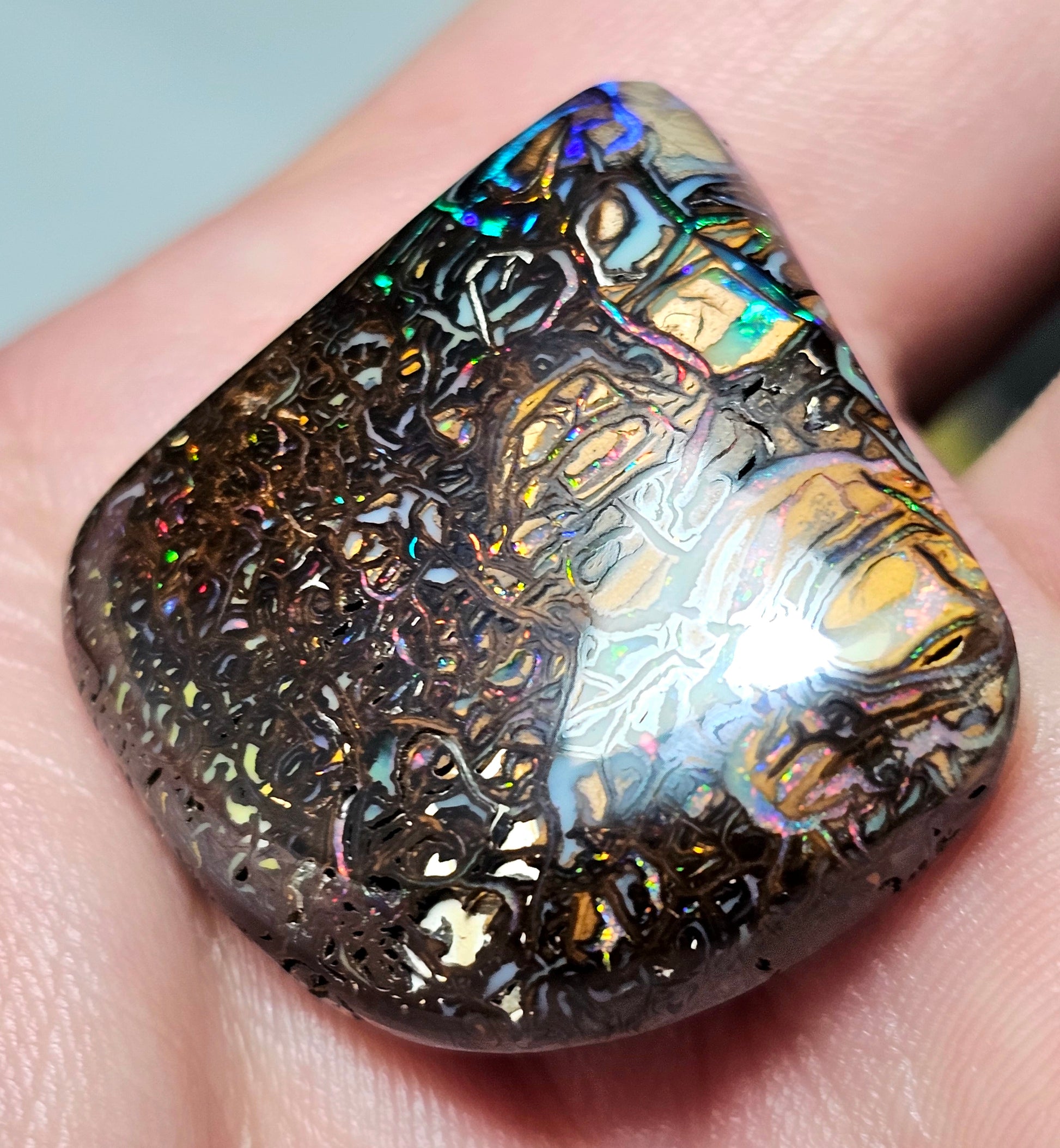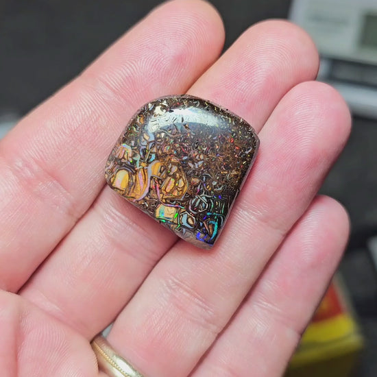 Queensland Boulder Opal. Check out the video to see the colour play!