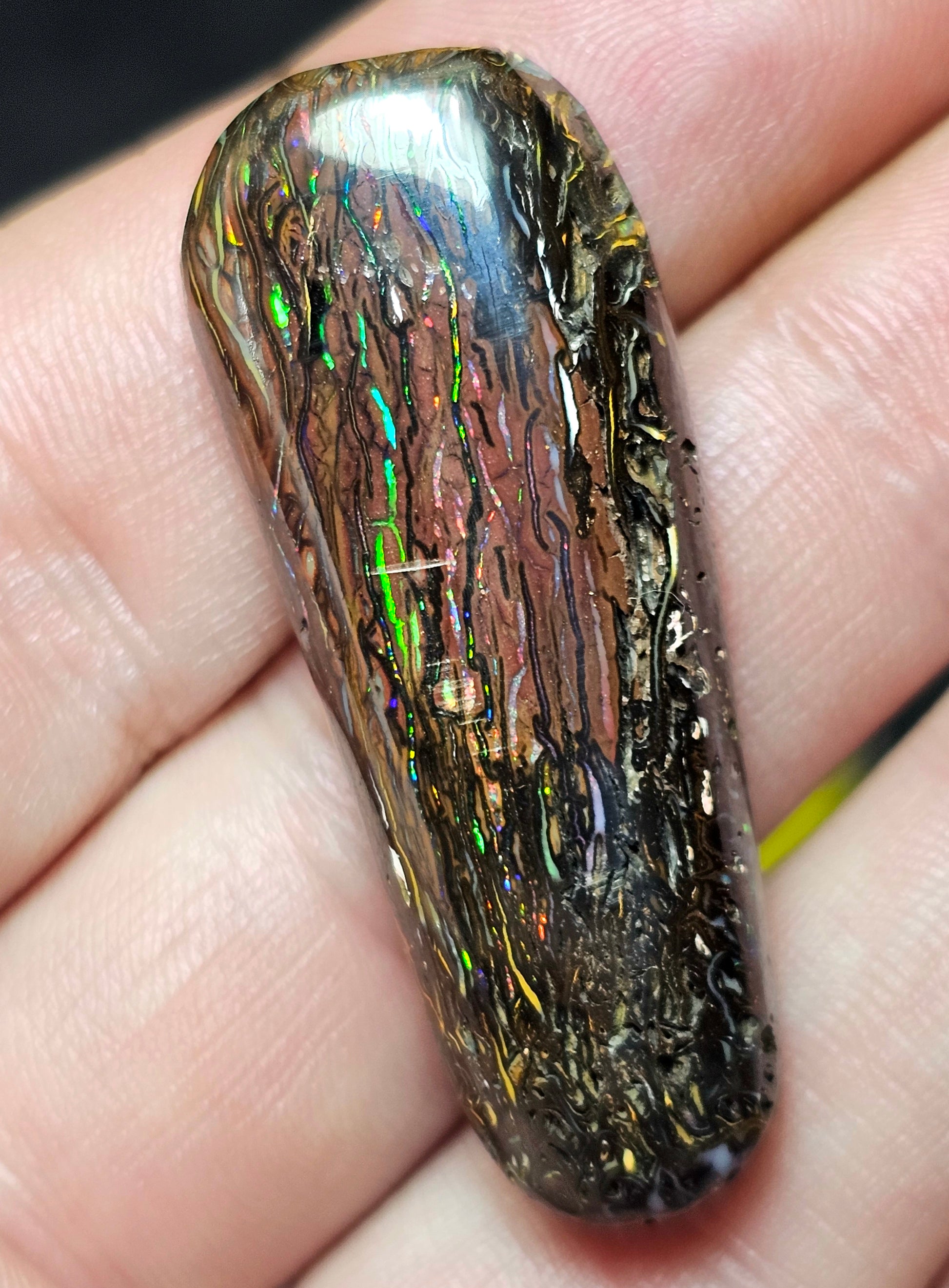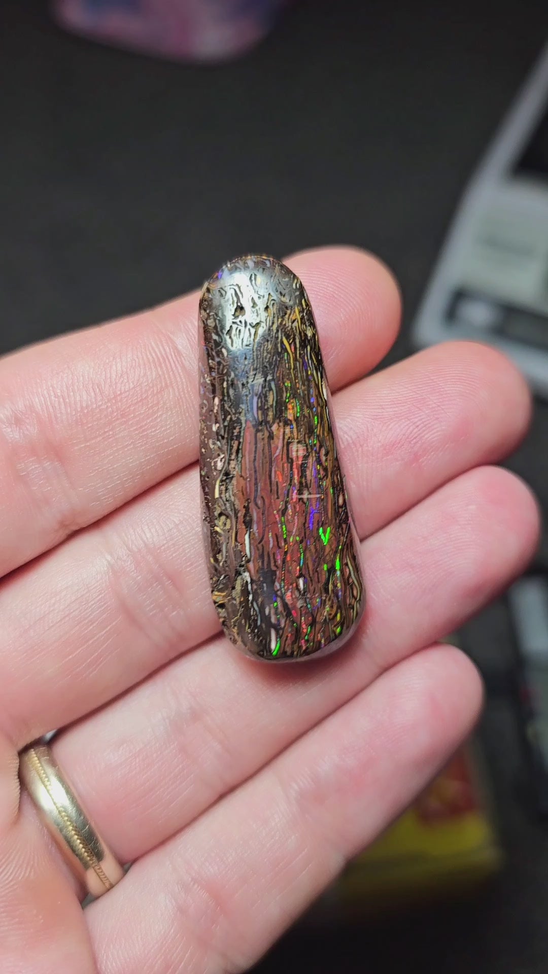 Queensland Boulder Opal. Check out the video to see the colour play!