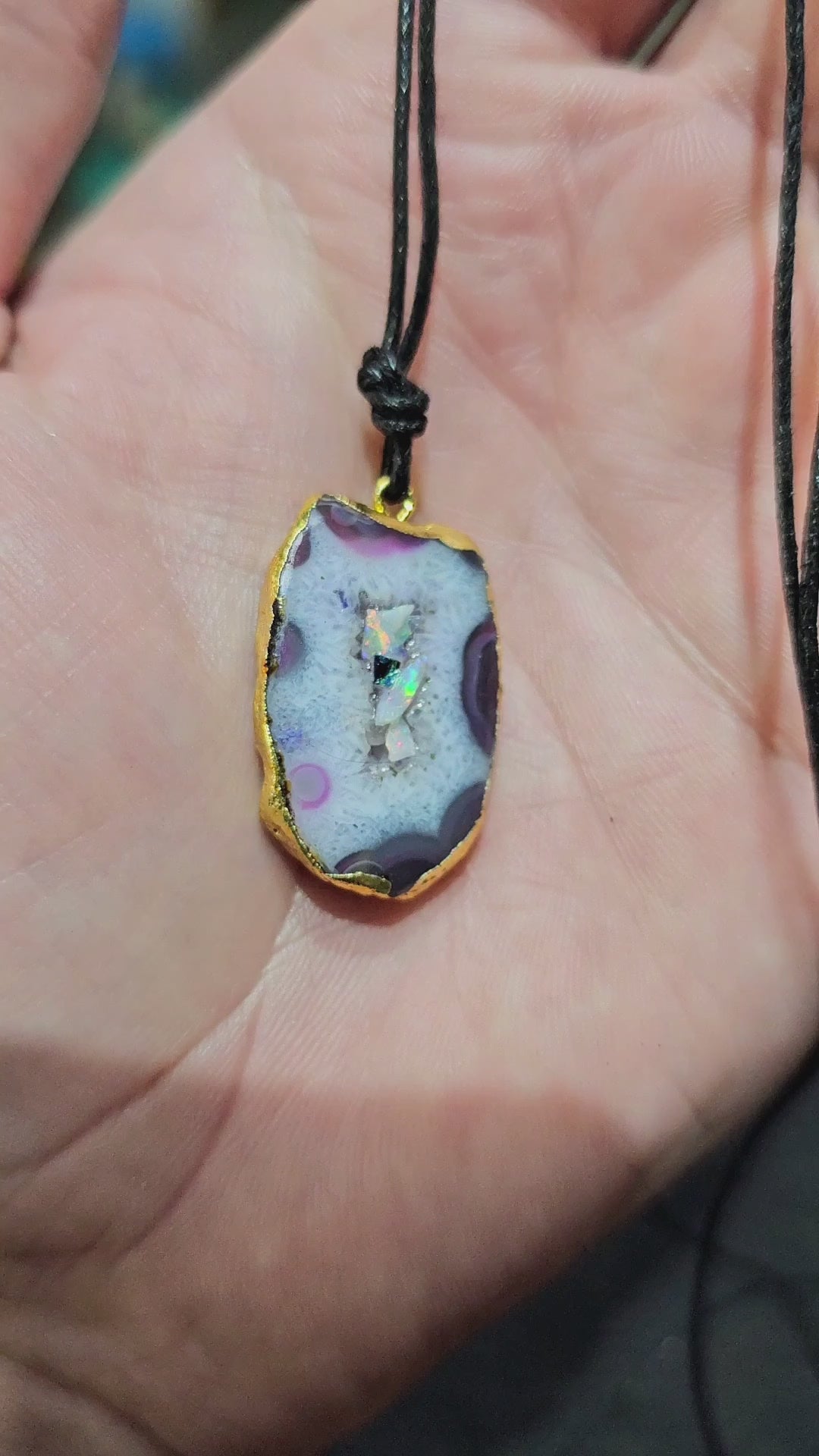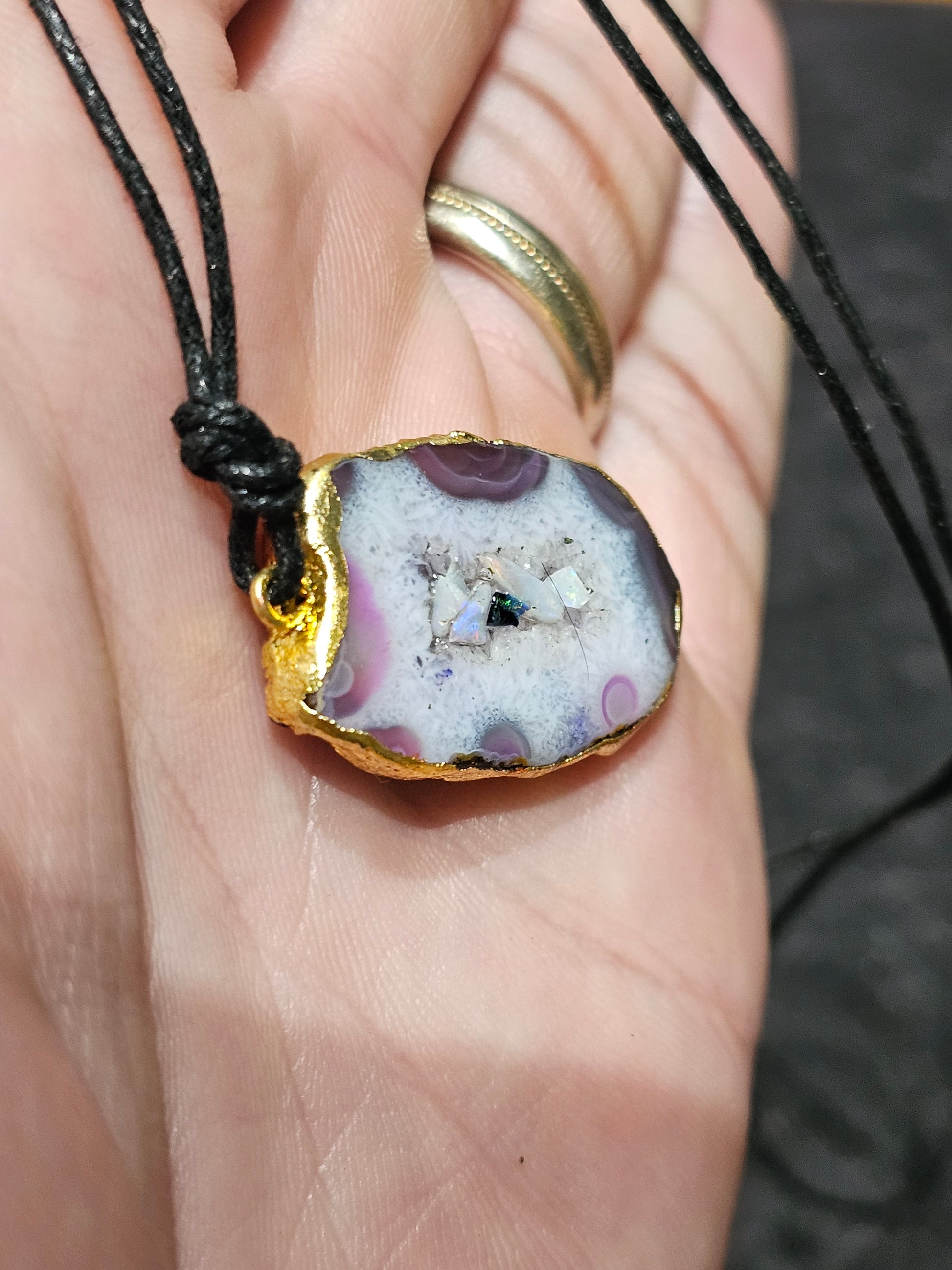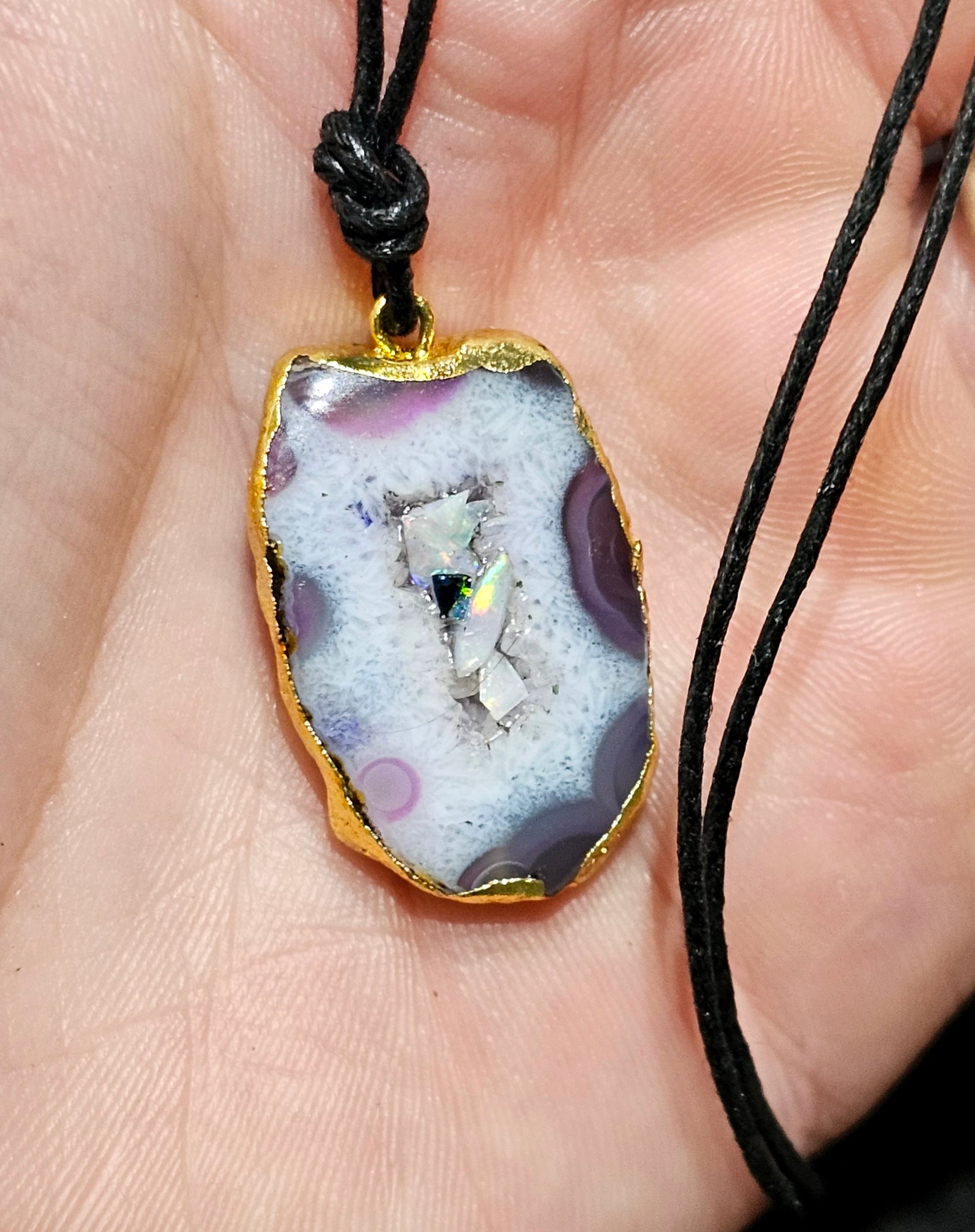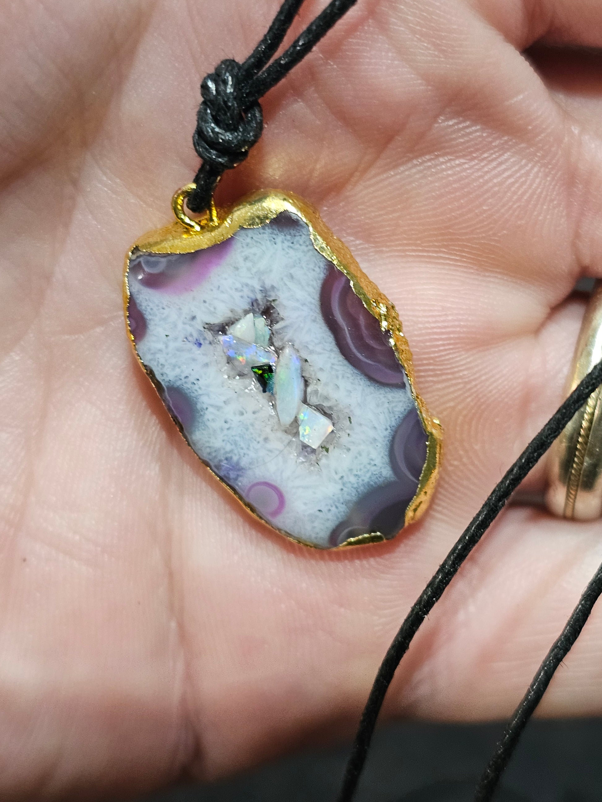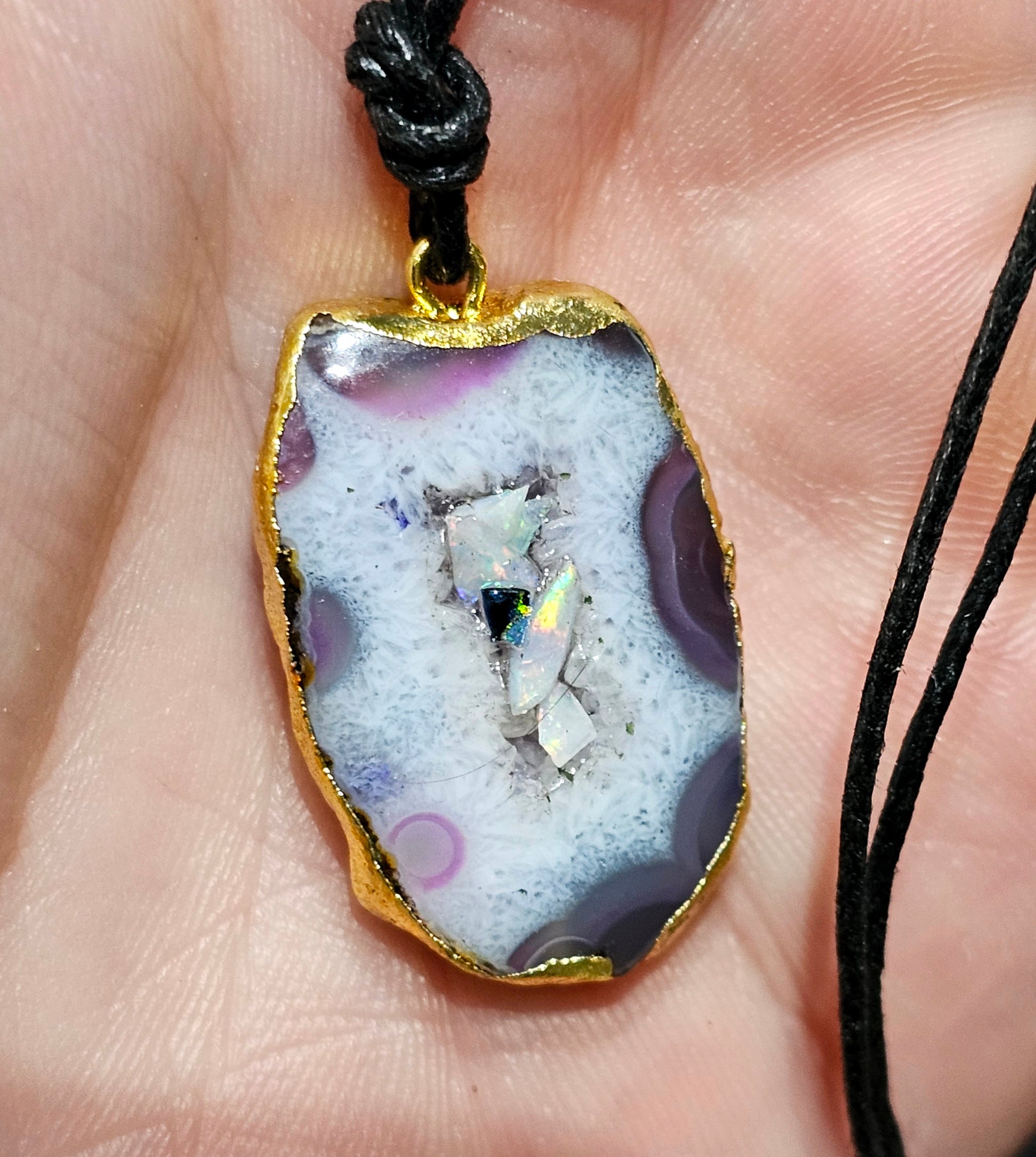 Fantastic Agate Pendant with Real Opal Chips