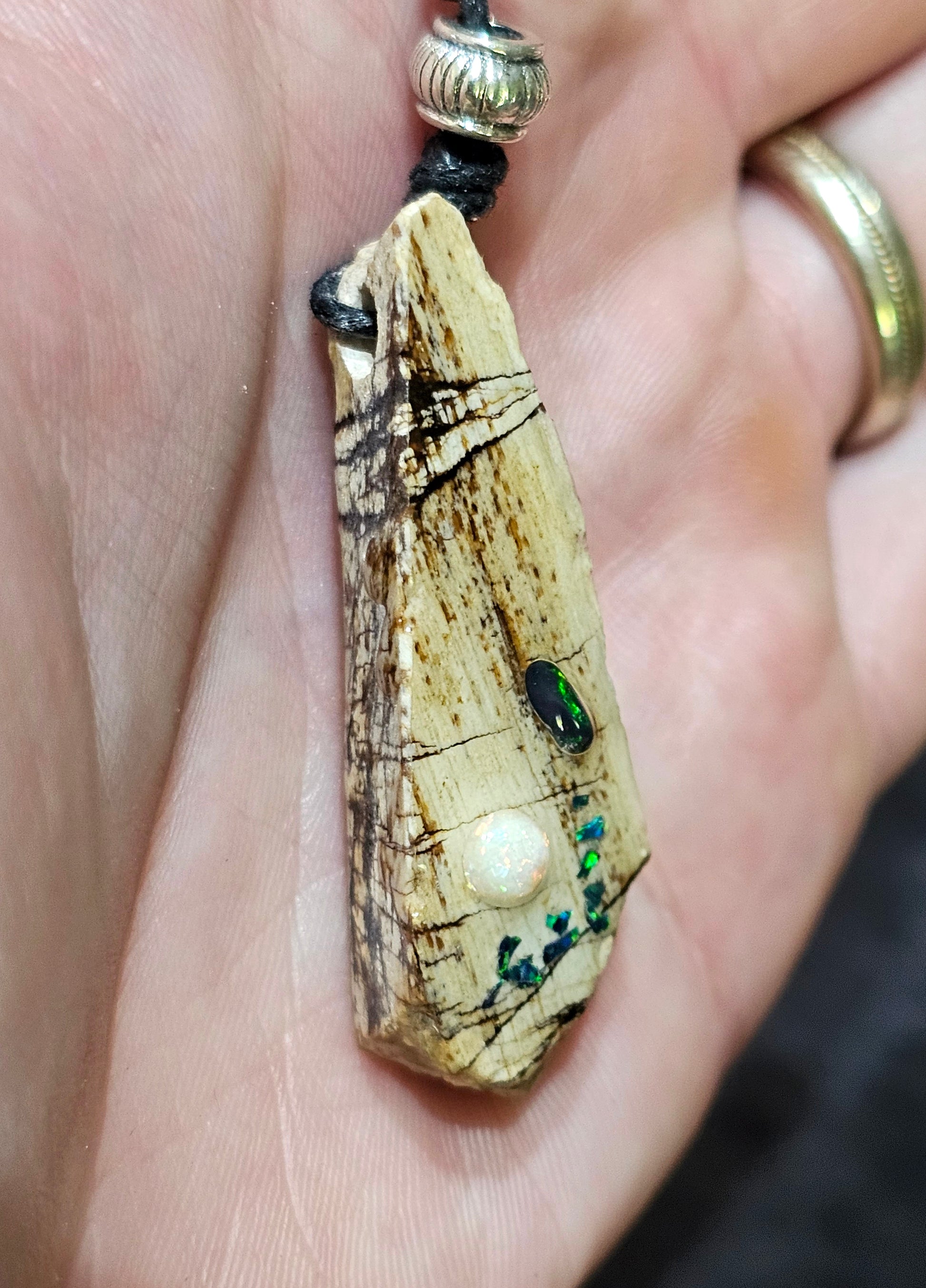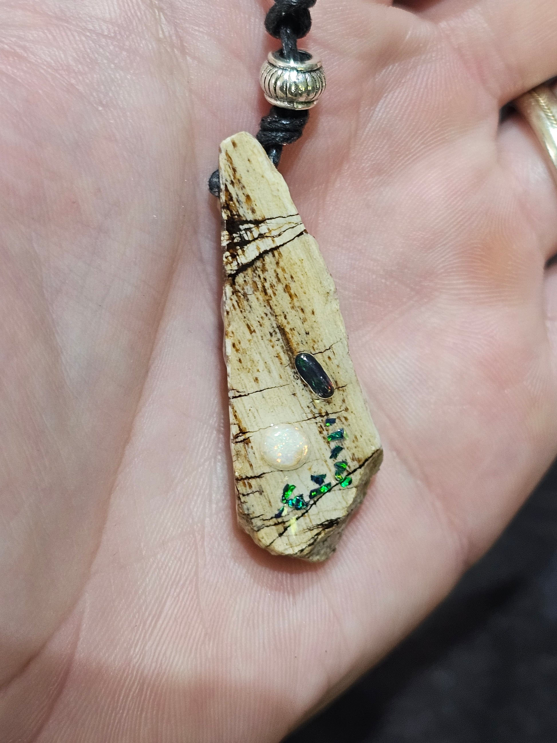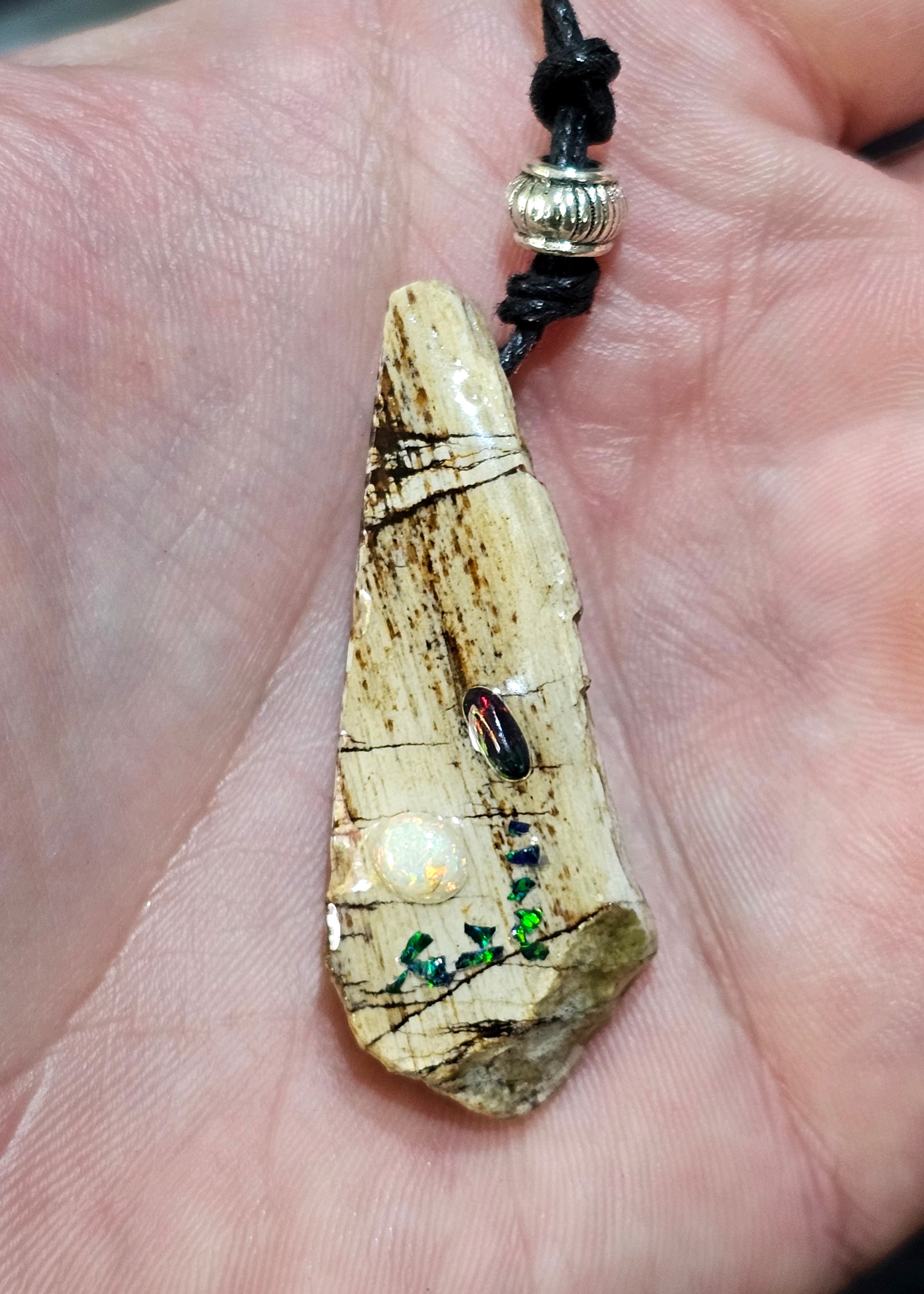 Beautiful Fossilized Wood Opal Chip Pendant!