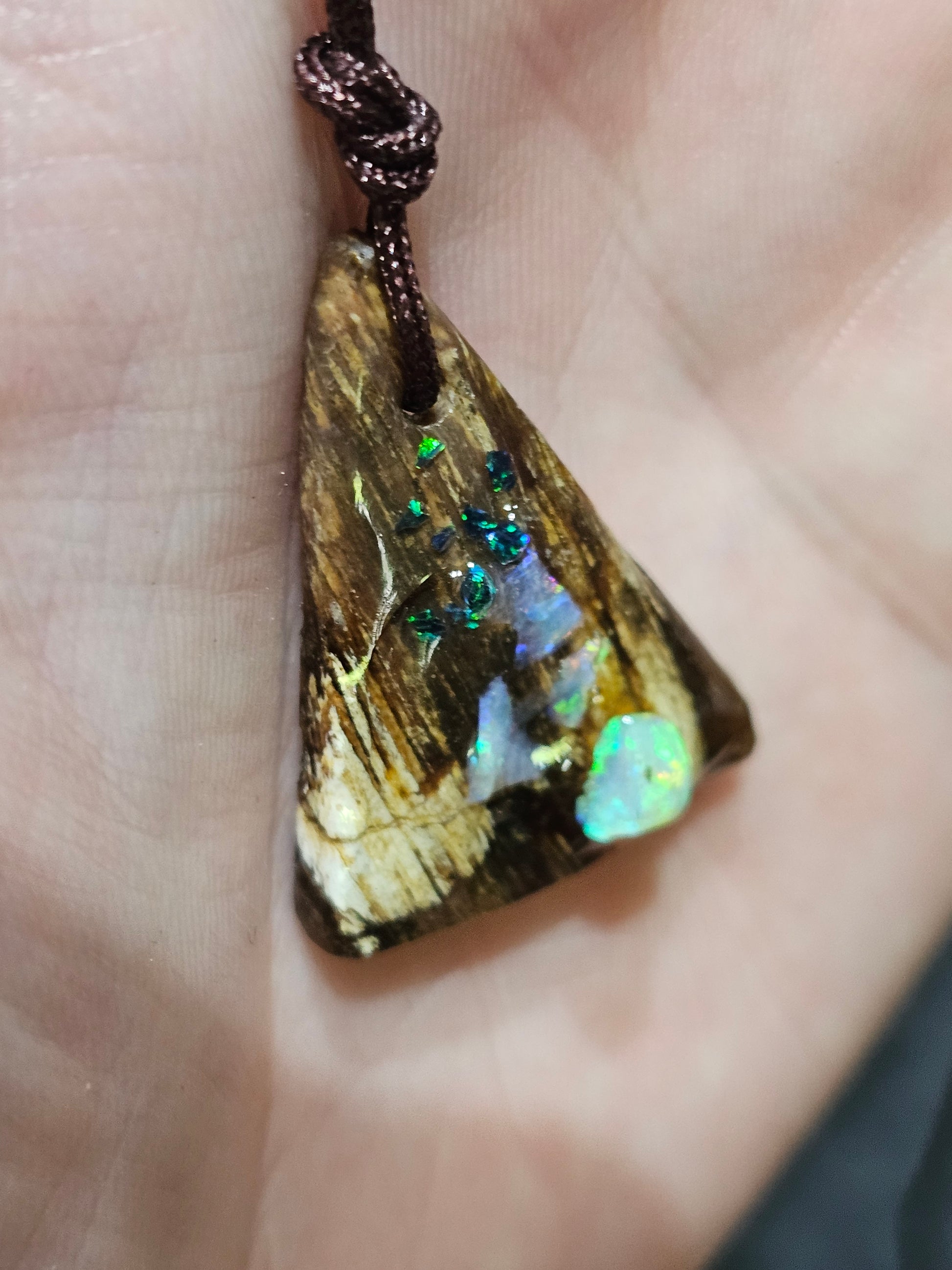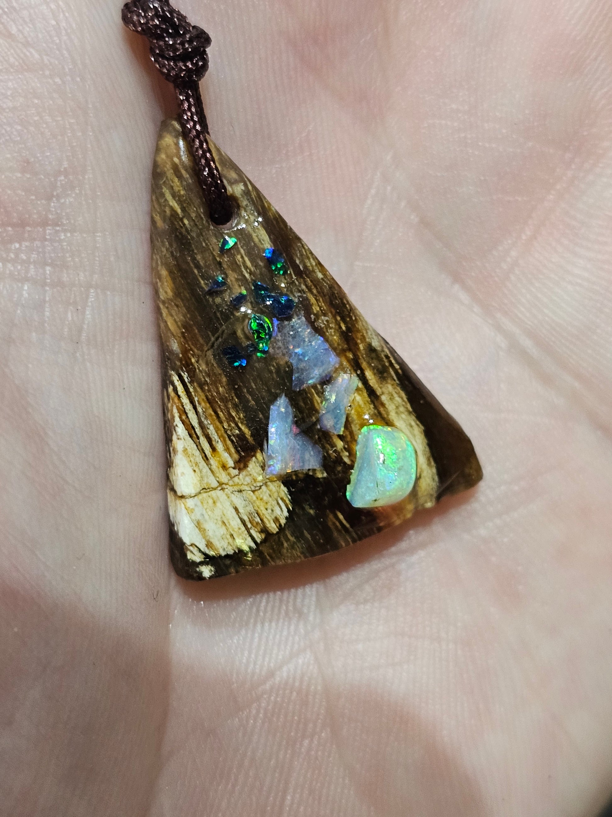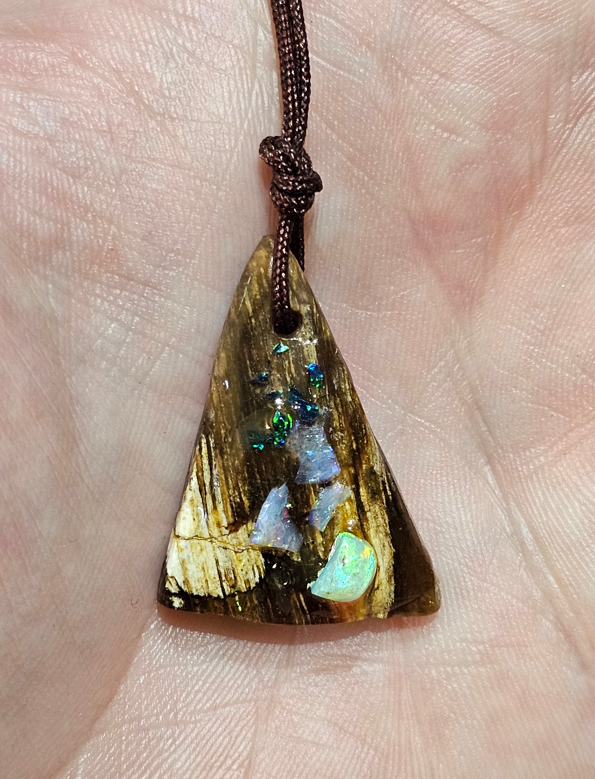 Beautiful Fossilized Wood Opal Chip Pendant!
