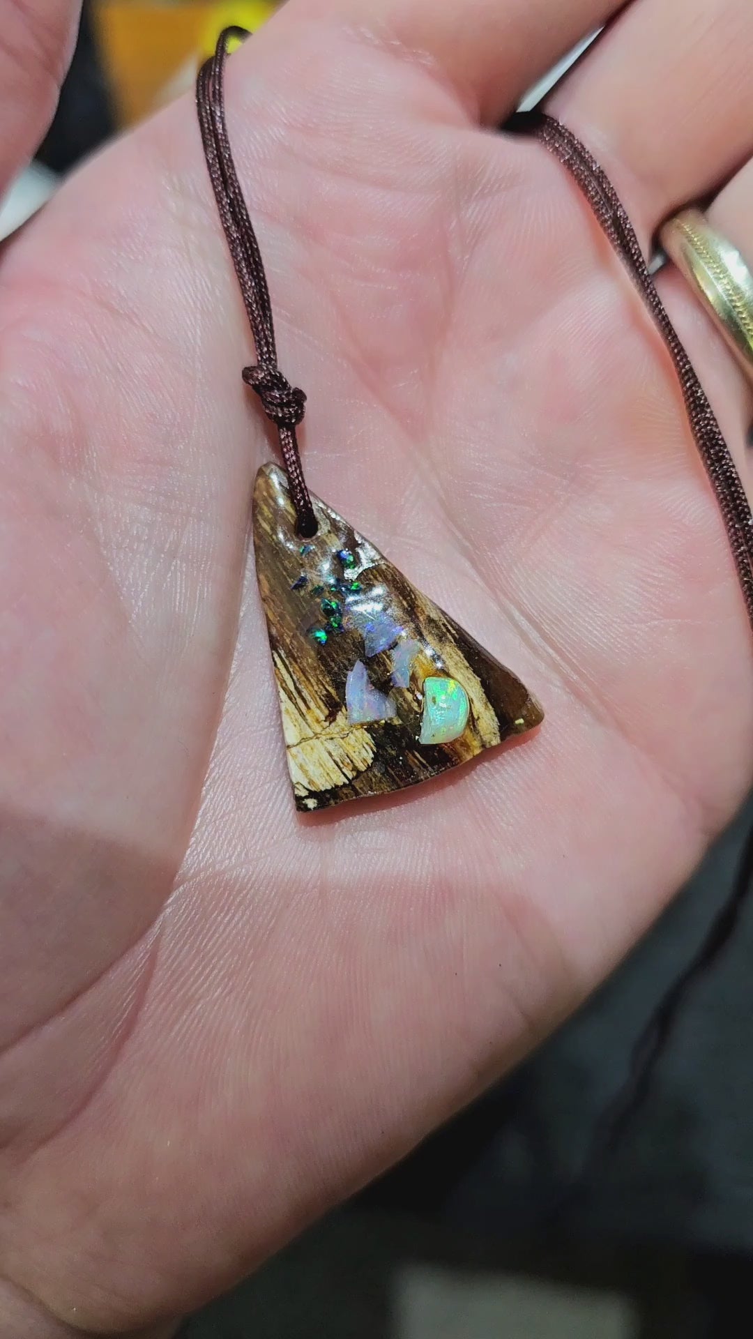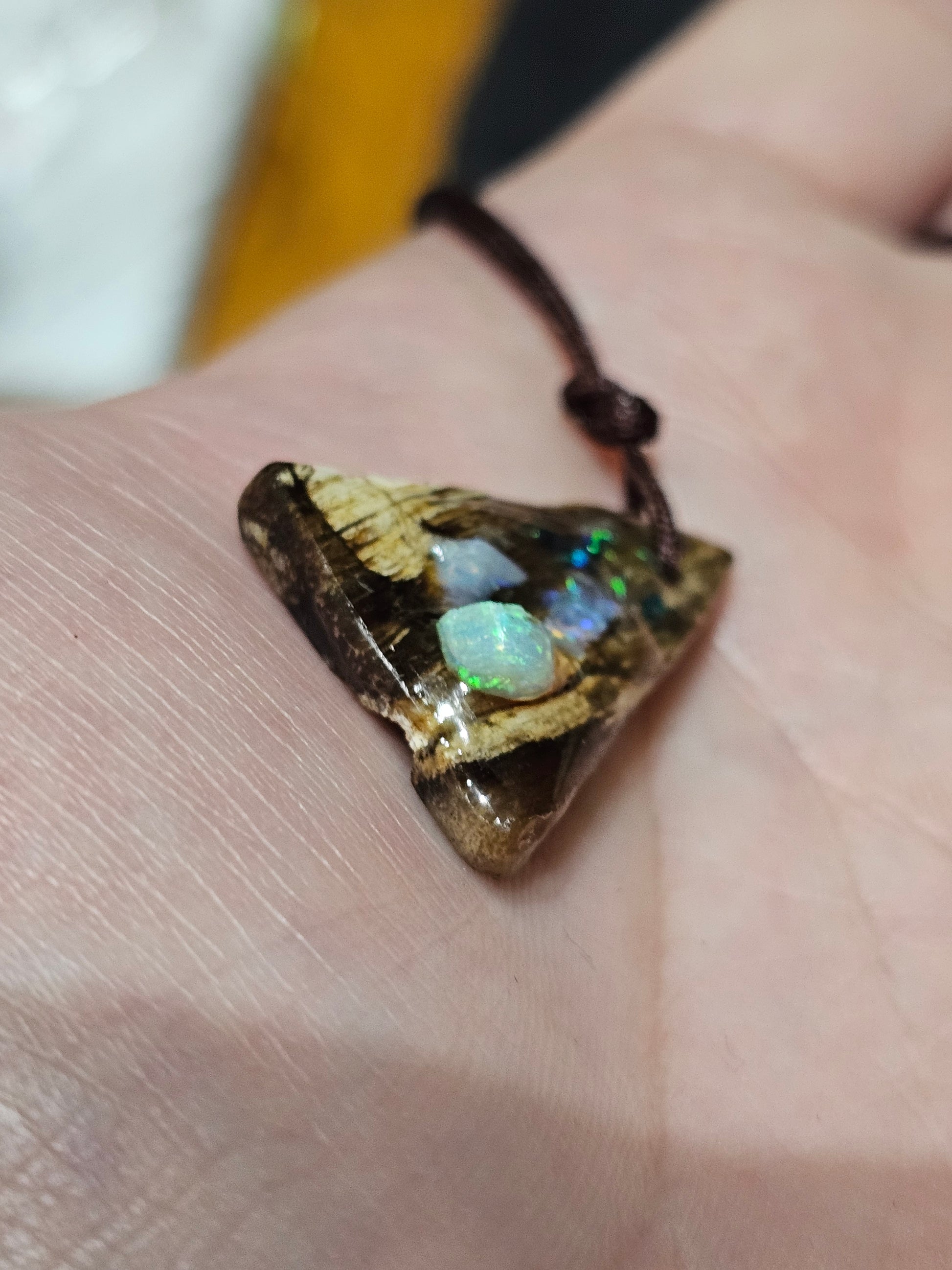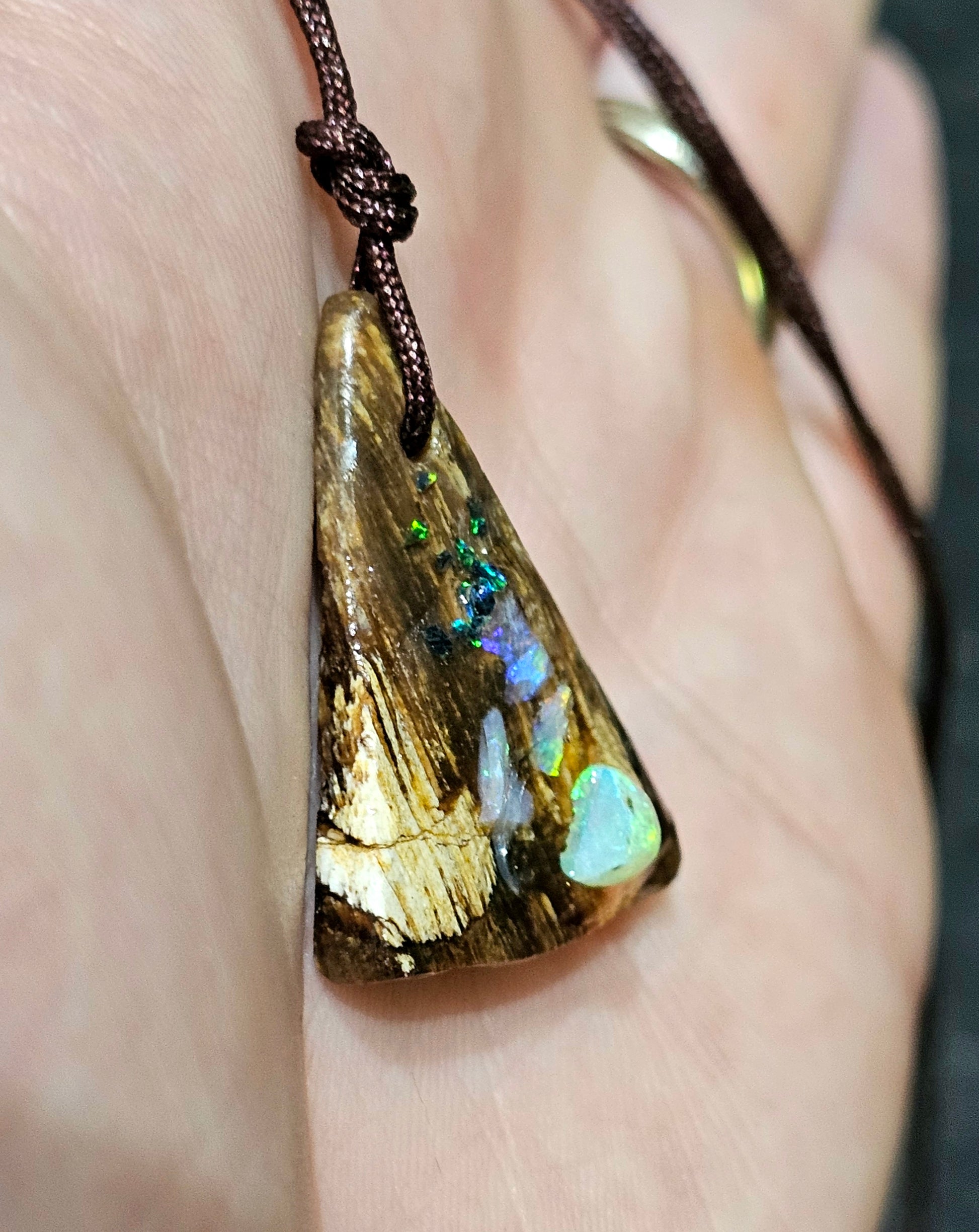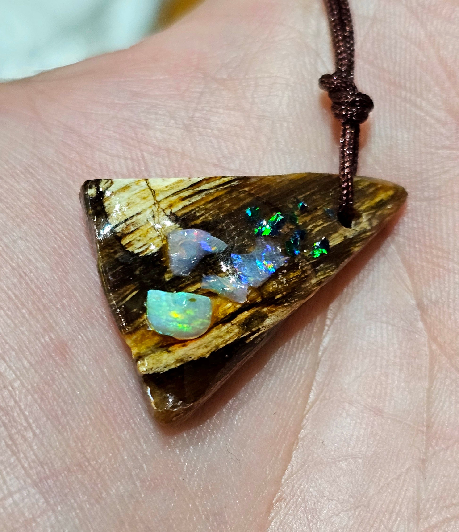 Beautiful Fossilized Wood Opal Chip Pendant!