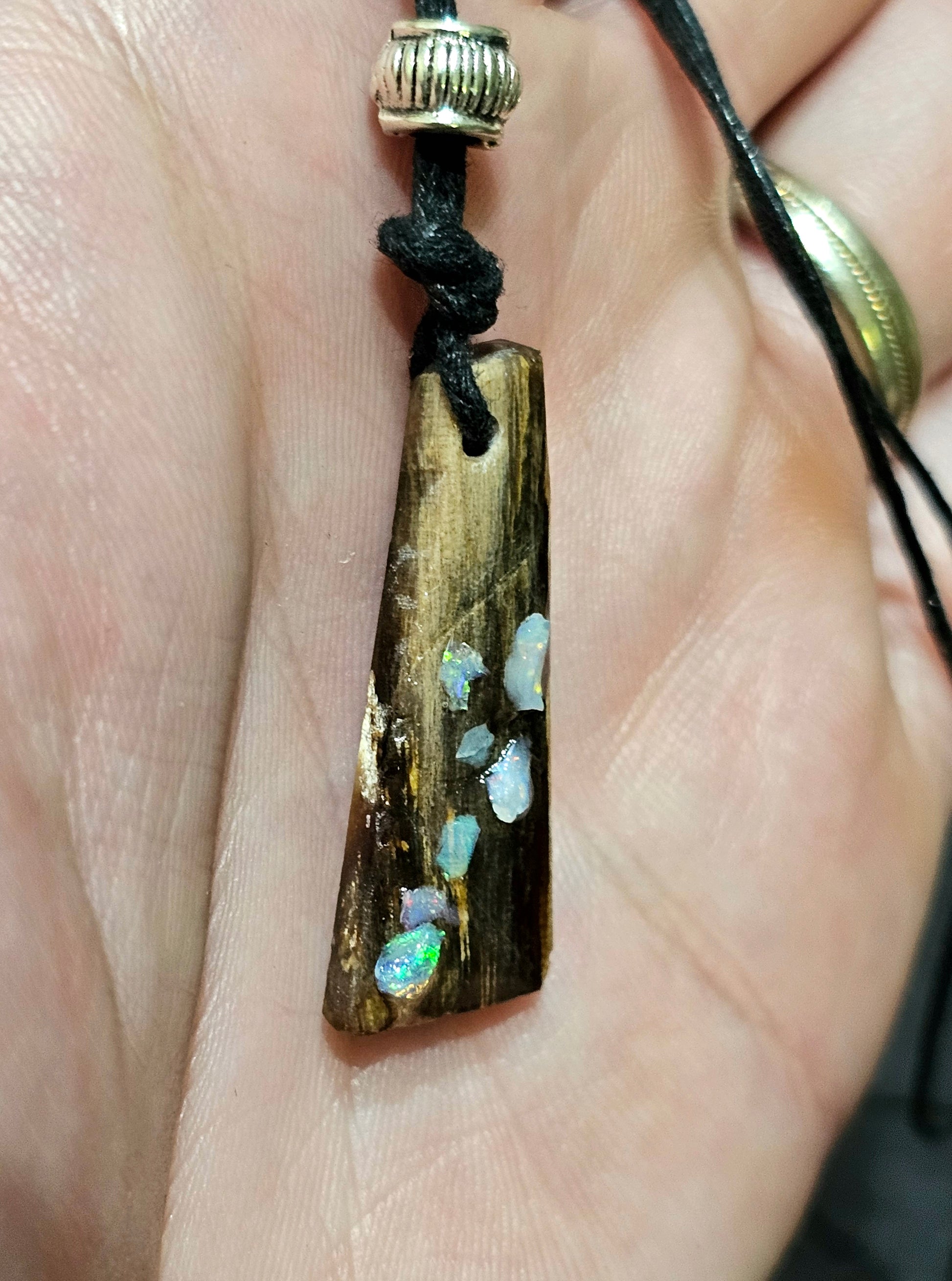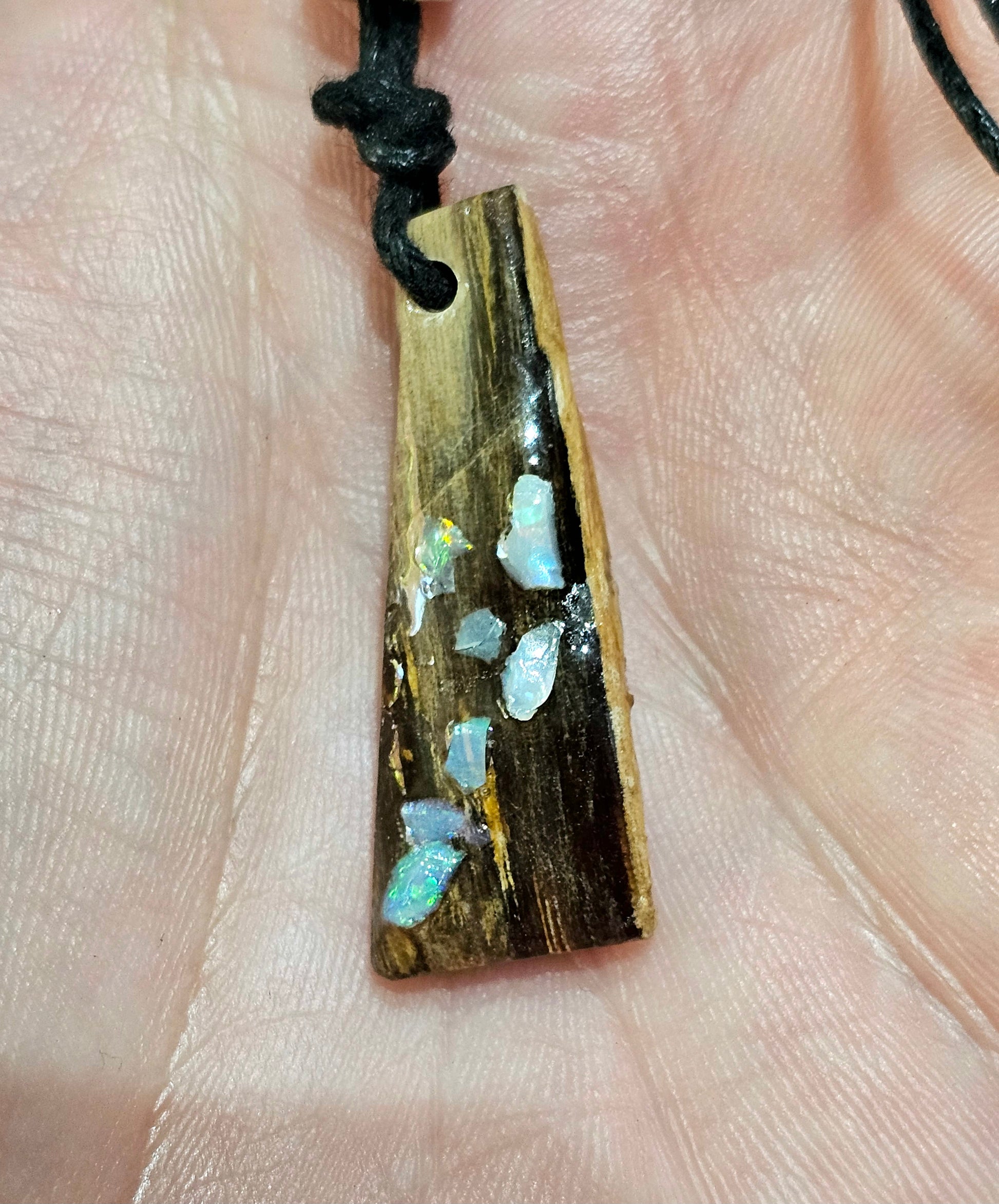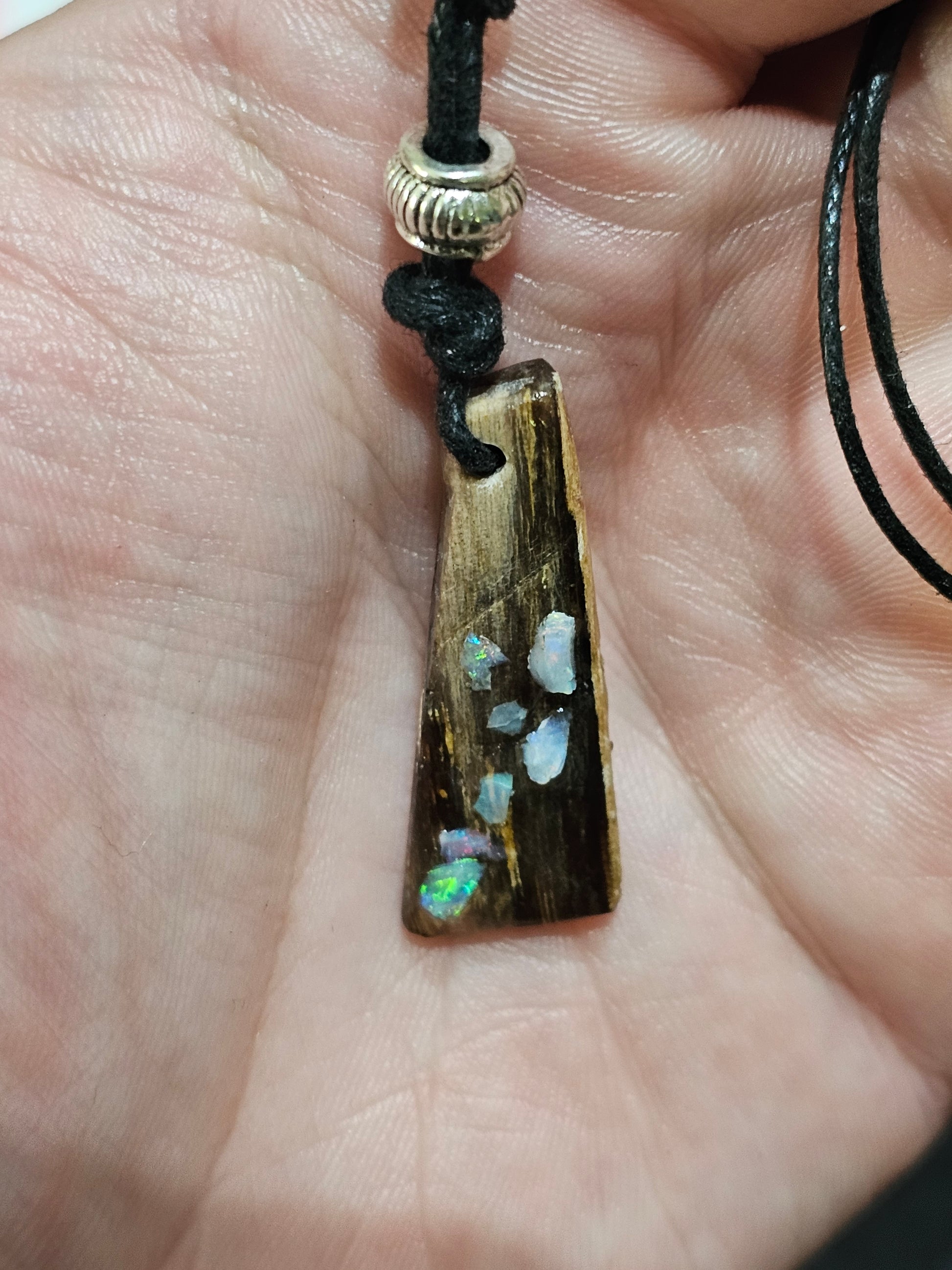 Beautiful Fossilized Wood Opal Chip Pendant!