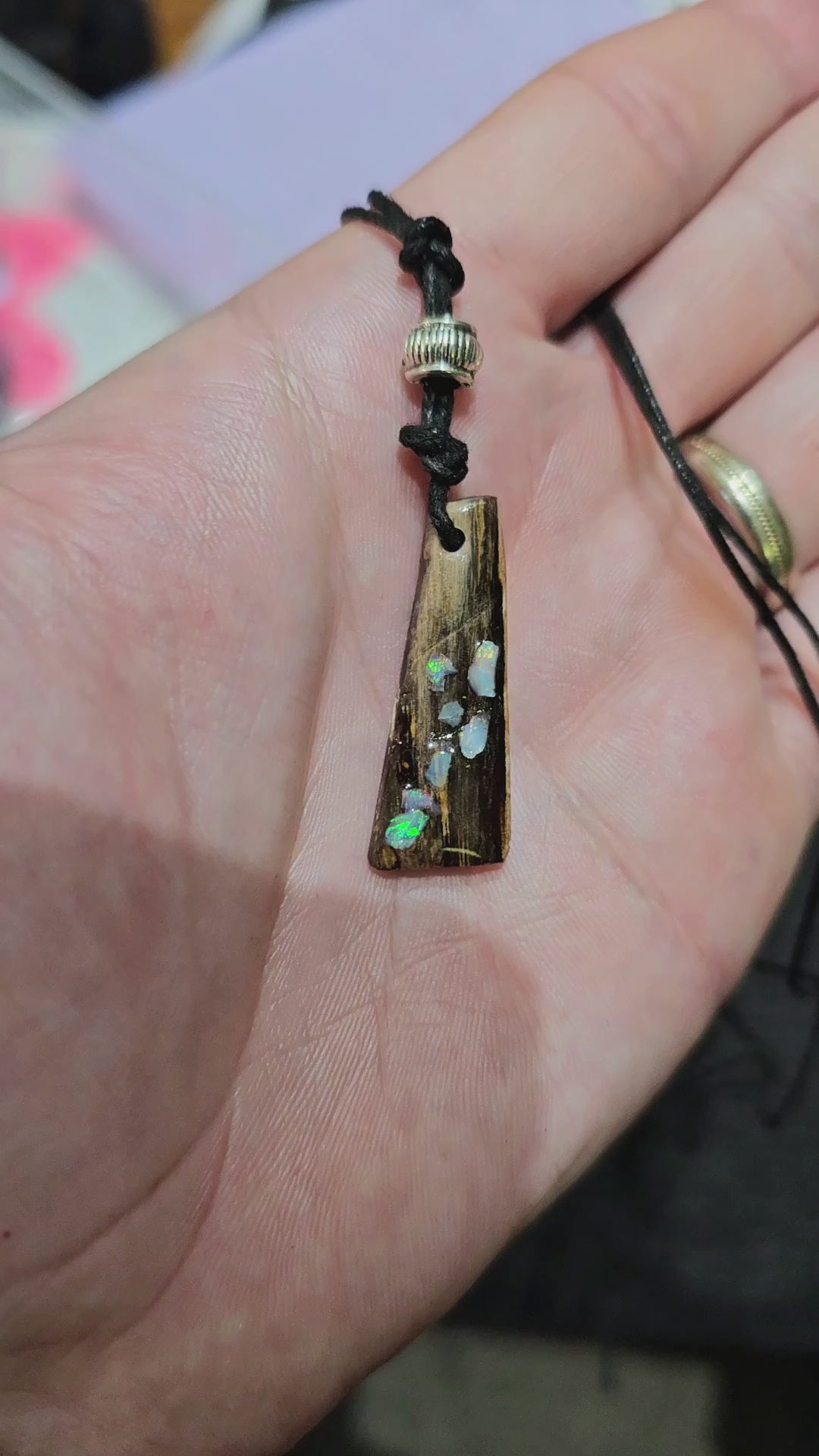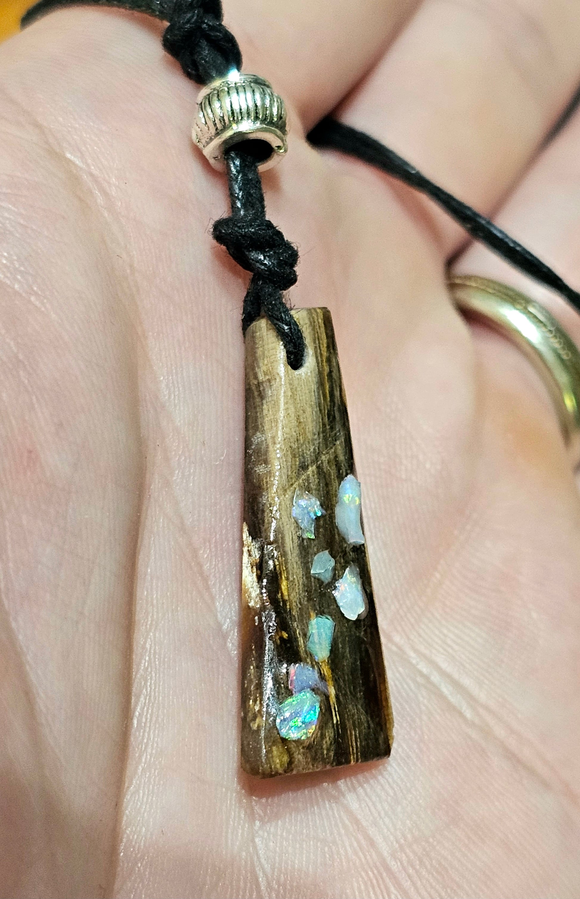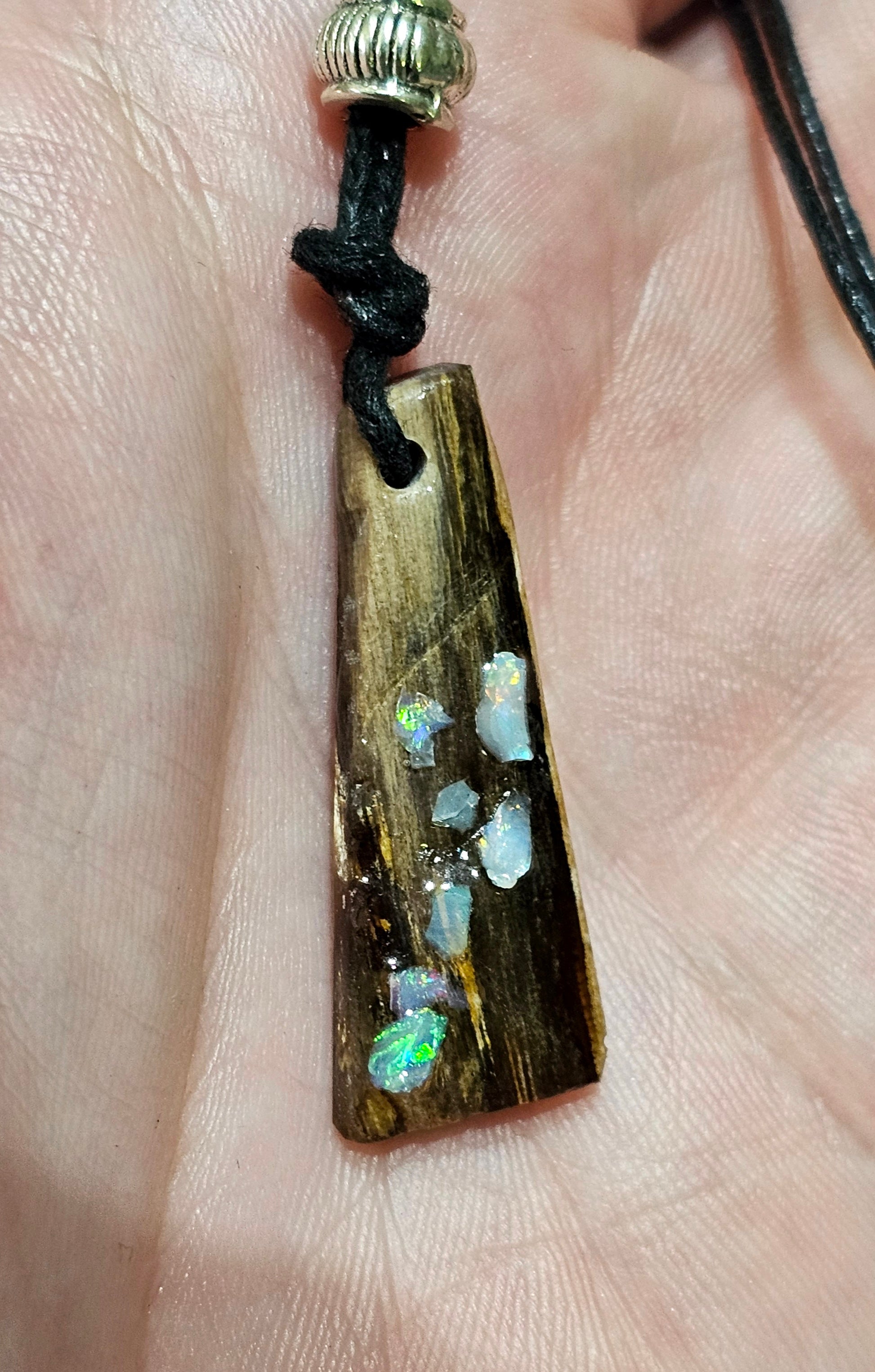 Beautiful Fossilized Wood Opal Chip Pendant!