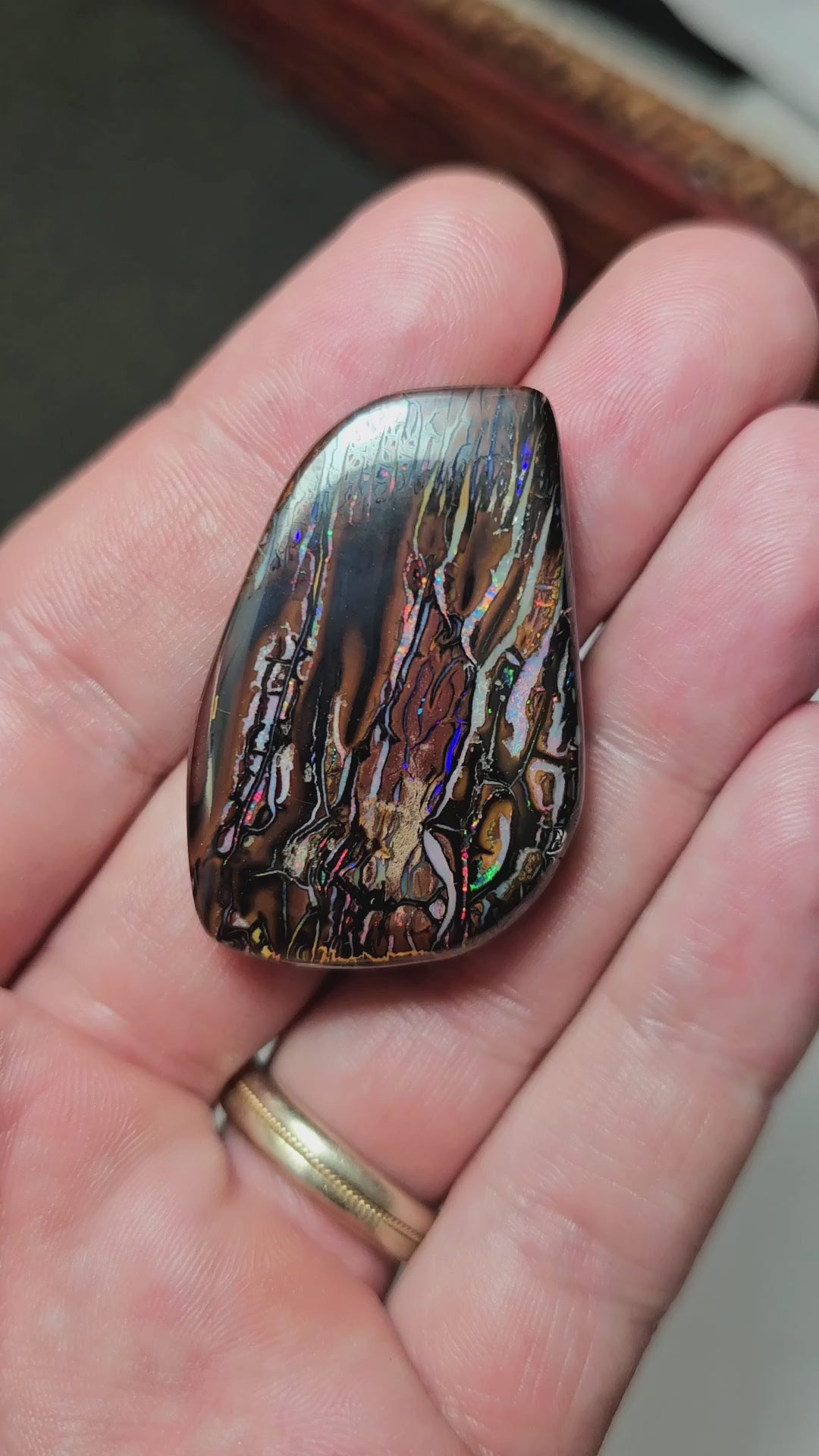 Queensland Boulder Opal. Check out the video to see the colour play!