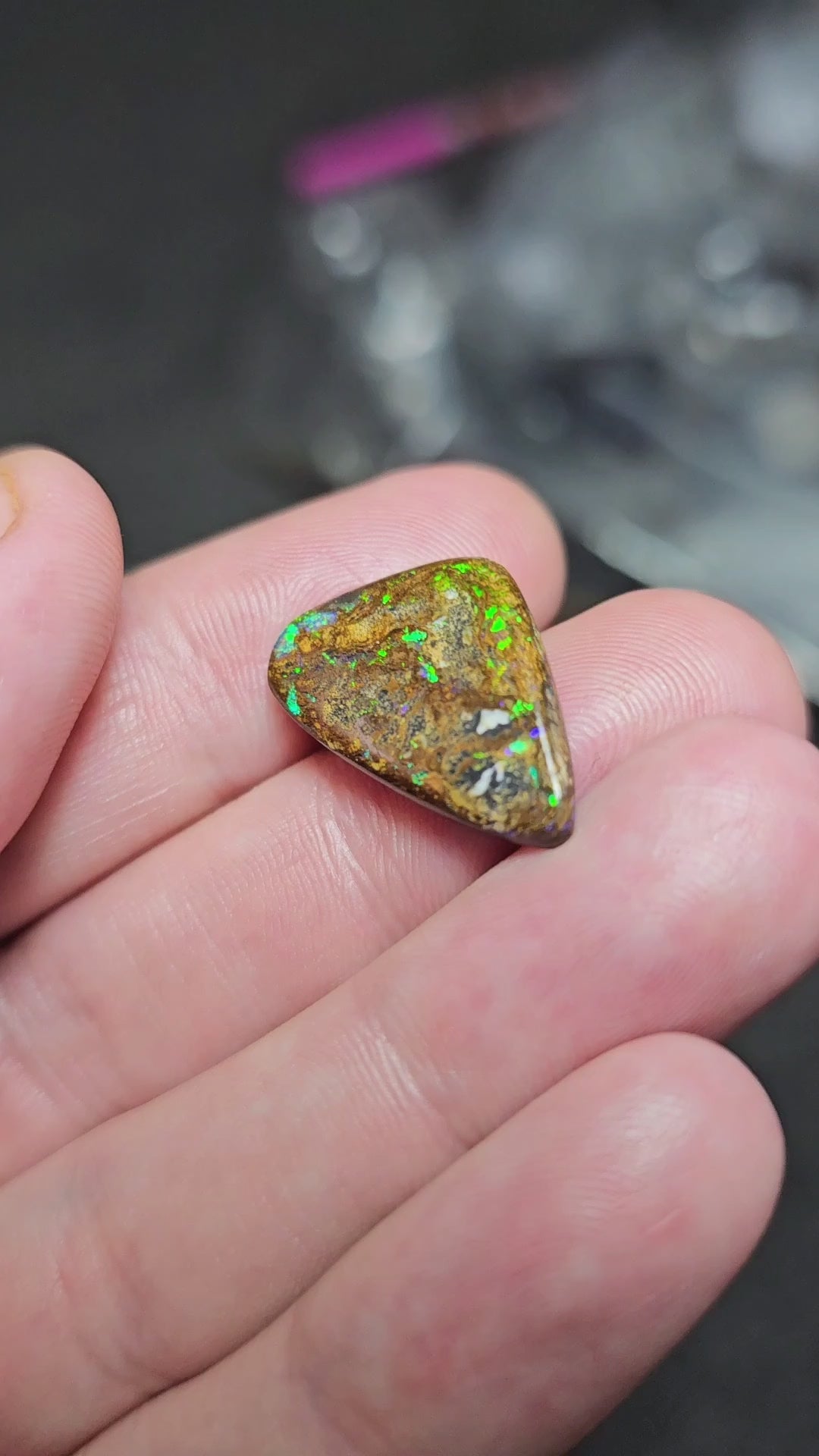 Queensland Boulder Opal. Check out the video to see the colour play!