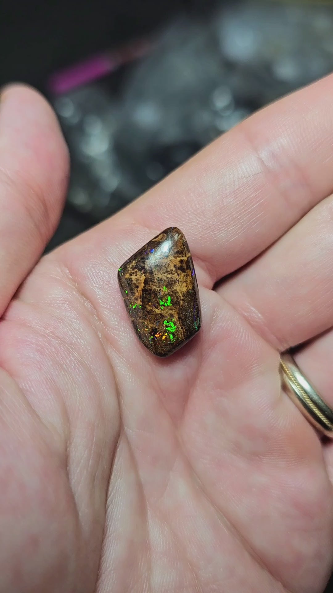 Queensland Boulder Opal. Check out the video to see the colour play!