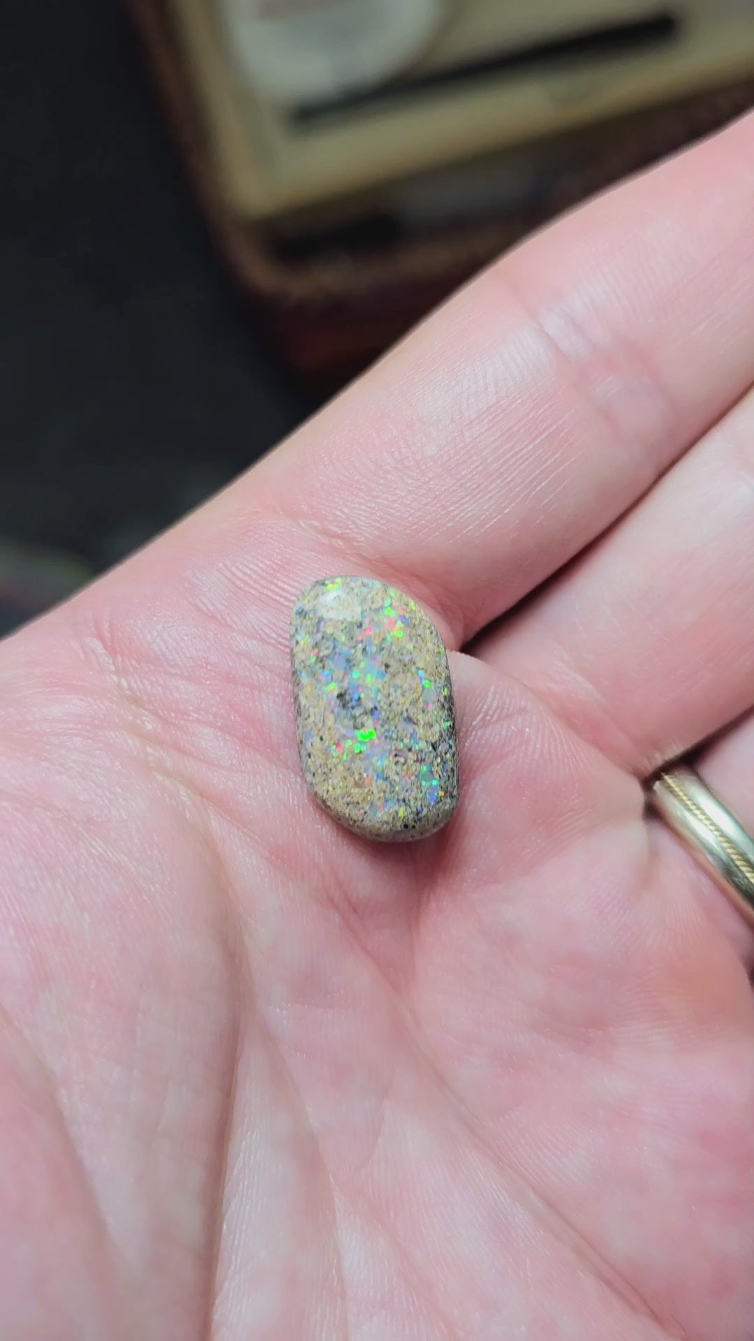 Queensland Boulder Opal. Check out the video to see the colour play!